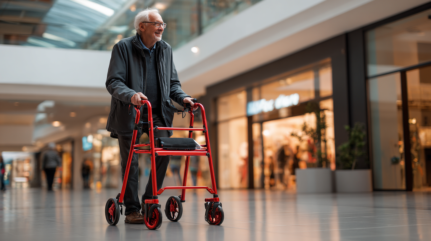 Orthonica Foldable Mobility Steel Rollator 136kg Max Capacity Red