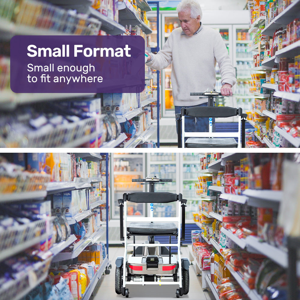 Introducing the Equipmed PacerLite Ultra-Lightweight Mobility Scooter, designed to enhance your daily mobility with ease and comfort. Engineered with transport and storage in mind, this scooter features straightforward controls, premium brushless motor and a lithium battery, delivering a seamlessly smooth ride tailored for users of any experience level.